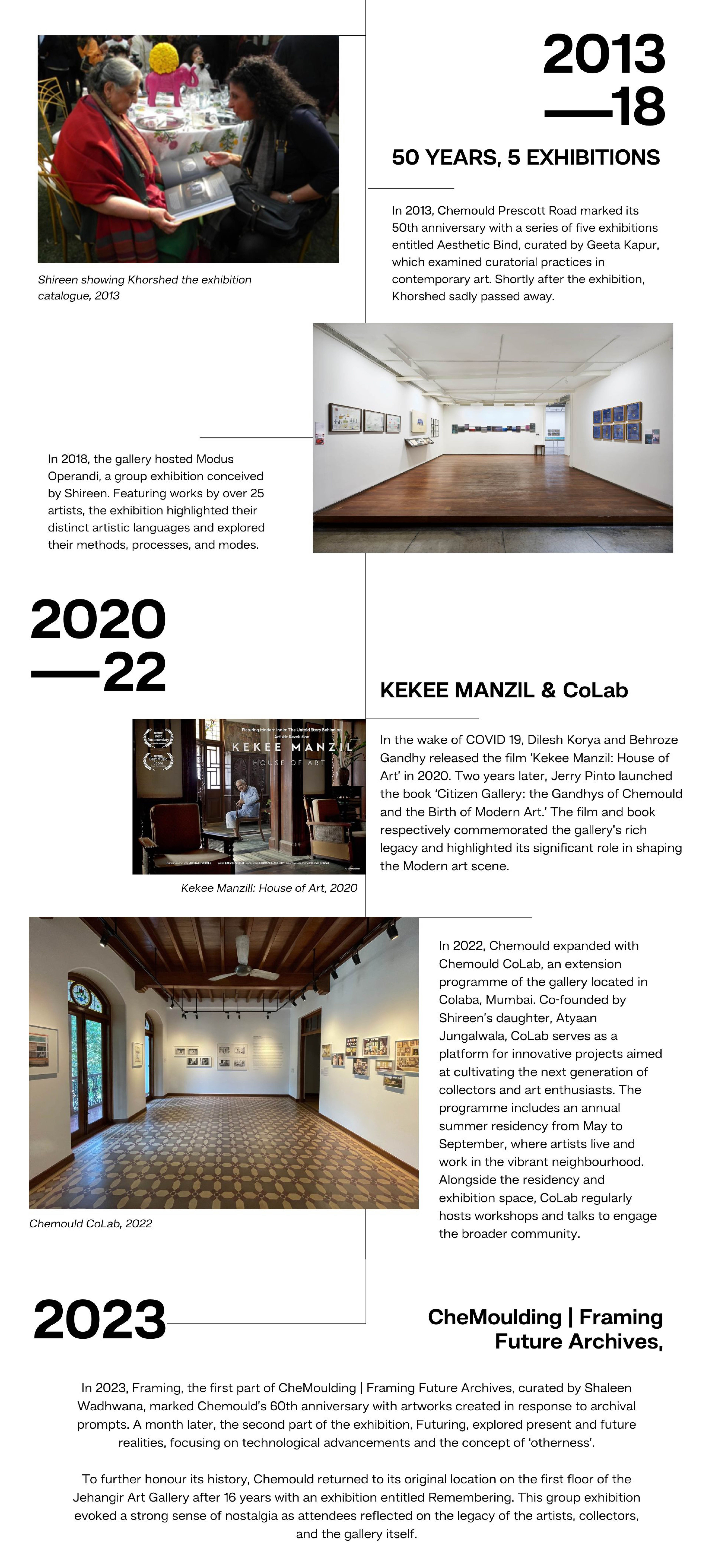 50 Years of Contemporary ArtChemould Prescott Road turned 50 in 2013. The gallery started by Kekoo and Khorshed Gandhy, was taken over by their daughter Shireen Gandhy who joined them in 1988, has a... -