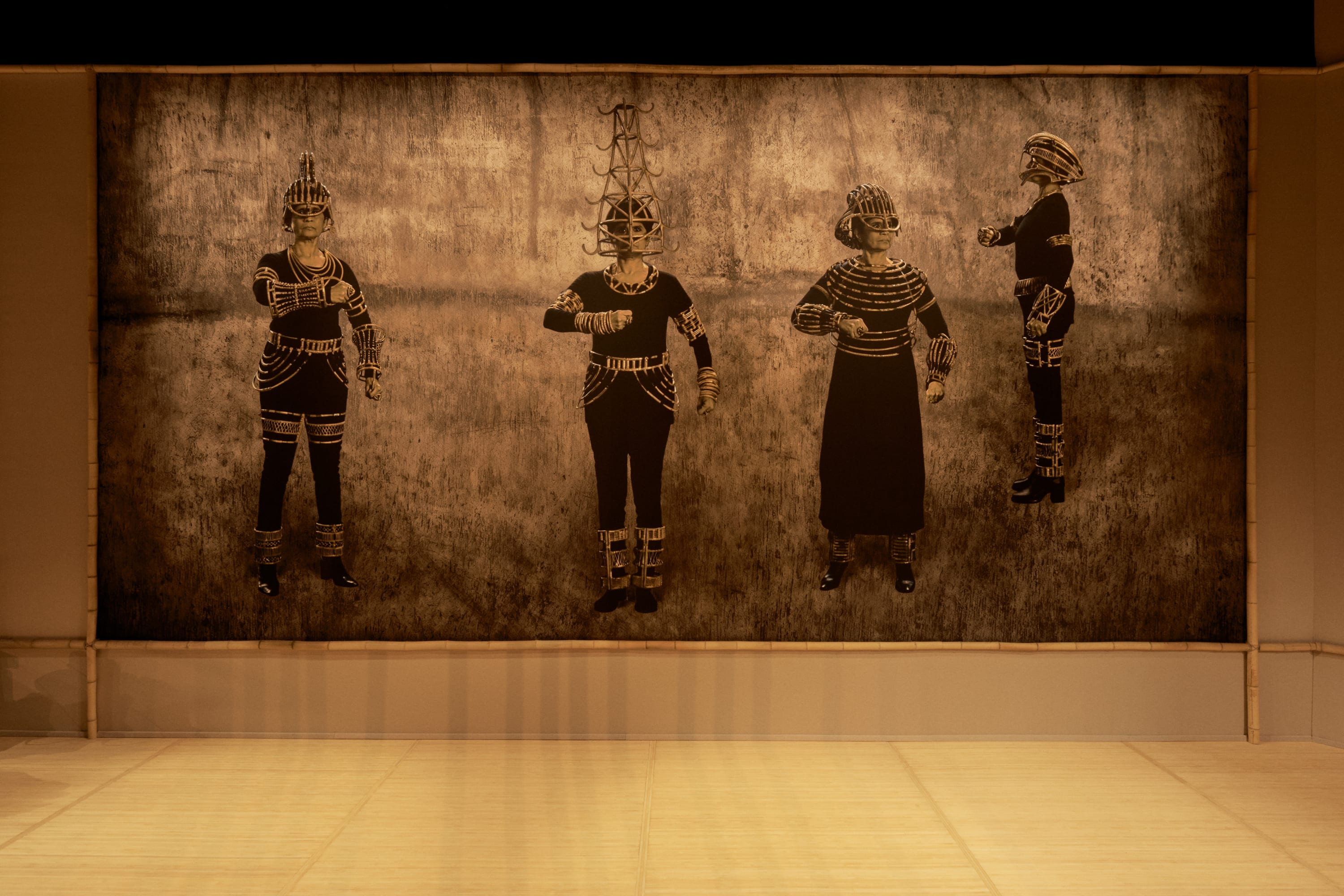 Inserted into the heart of the city, the body cannot be neutral, as it is interconnected with material, symbolic and sociological definitions. It is always placed in situ, occupying its position and location in the world, and therefore represents the primary means of a political relationship, insofar as it returns subjectivity to its exposed, gendered and plural dimension. A female body, outside the domestic sphere, becomes a social construct. In her series "of bodies, armour and cages", Shakuntala Kulkarni uses cane, a flexible, elastic medium, to design armatures: sculpted, high-performance elements that clothe, protect and transform the body, but at the same time imprison it in a kind of cage with a seductive yet uncomfortable aesthetic.